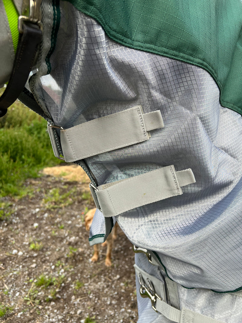 Un superbe design de Swish combine des matériaux de participation et de nylon. La section de participation est un tissu ripstop 1200 deniers qui offre une protection contre les averses de pluie imprévisibles. La section en nylon est légère et respirante, offrant durabilité, circulation de l'air, protection contre le soleil et les mouches. Un couvre-cou plus long et amovible garantit à votre cheval une couverture maximale même au pâturage et est sécurisé avec des sangles Velcro à double verrouillage. Cette nouvelle couverture est conçue pour protéger votre cheval des insectes lors des journées pluvieuses/fraîches de l'été tout en le gardant au sec . Il sera également idéal pour une utilisation nocturne pour les chevaux qui vivent dehors 24h/24 et 7j/7, la partie de participation gardera le froid et les sections en maille protégeront des mouches tout en empêchant le cheval d'avoir trop chaud. Le cou est détachable et est doublé le long de la crinière pour éviter tout frottement.