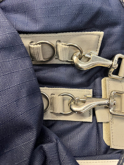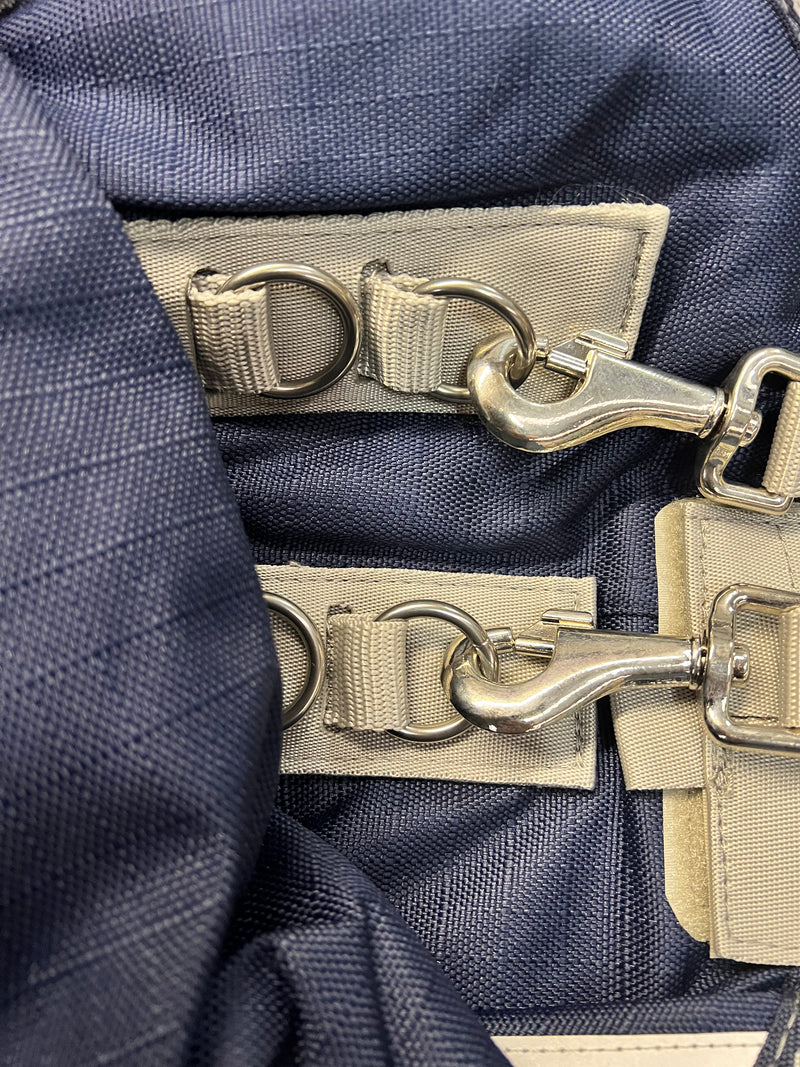 200g Detachable Neck Turnout Rug: A fantastic medium-weight turnout rug that can be used with or without the detachable neck cover. This rug has liner attachments, meaning our rug liners can be added to increase warmth throughout the seasons. The neck cover attaches with two double-locking Velcro pieces. It has a 1200-denier ripstop outer and 200g of filling. This rug has reflective strips on the front, rear, and tail flaps. It has large shoulder gussets, cross surcingles, a tail flap and removable elasticated leg straps. Fully waterproof and breathable. It is designed to sit higher on the neck and shoulders to prevent the rug from slipping back and rubbing. We have had fantastic feedback about this design. This rug also comes with a handy storage bag. Always fasten clips inward-facing to avoid snagging on fences.